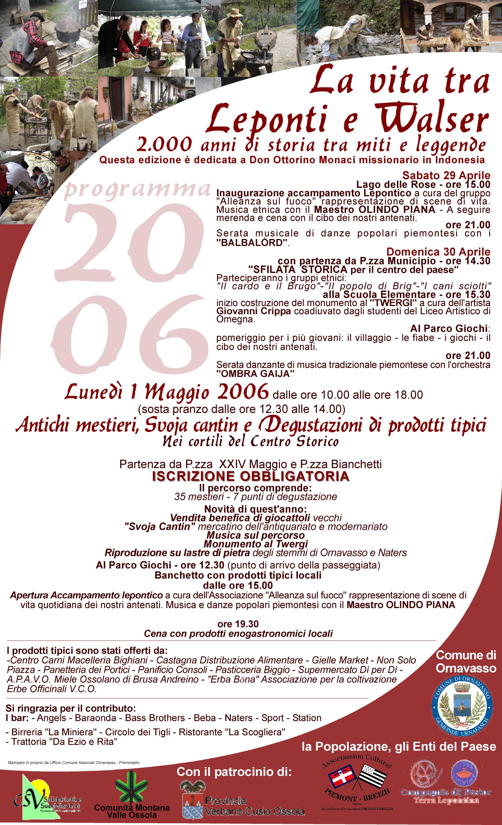 Lunedì 1 maggio dalle ore 10 alle 18 ANTICHI MESTIERI - SVOJA CANTIN E DEGUSTAZIONE PRODOTTI TIPICI - 35 mestieri - 7 punti di degustazione - dalle 15 Accampamento Lepontico -ore 16 Giuramento dei Guerrieri.