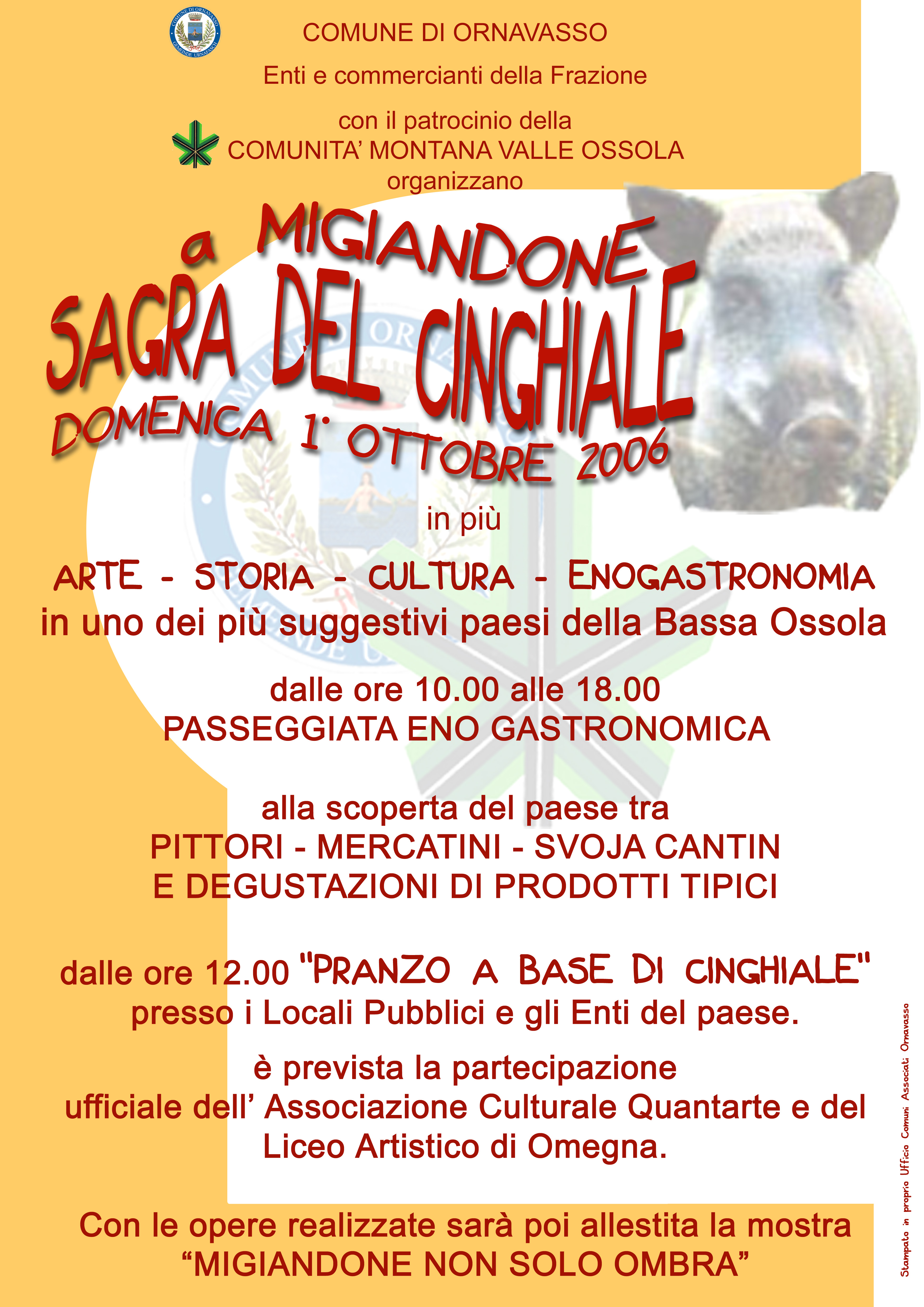 a Migiandone SAGRA DEL CINGHIALE Domenica 1° Ottobre 2006